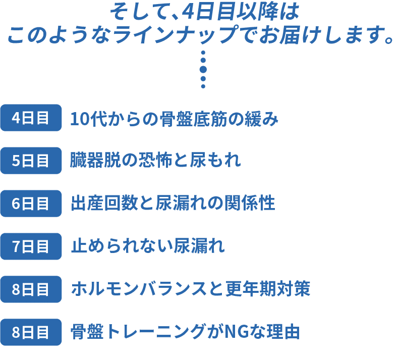 最後に、骨盤を正しい位置に戻して姿勢を改善することで、骨盤底筋が正常に働くようになります。