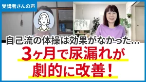 受講していなかったら、尿漏れがひどくなっていたのは確実だろうし、「医者に行こう」と思いながらも、行くのも恥ずかしいし、医者を選ぶのも「まだ先でいいかな」ってなって。